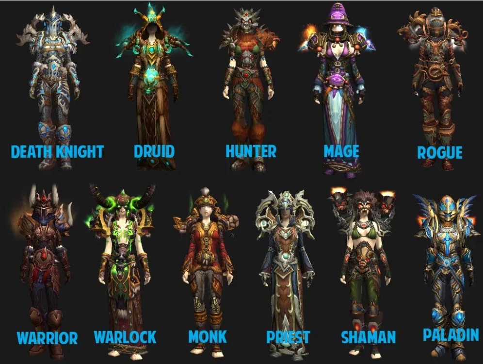 Unikátní transmog set pro každou třídu – efektní vzhled bez vlastností (např. druid získá Cycle Armor, warlock Betrayer Regalia).